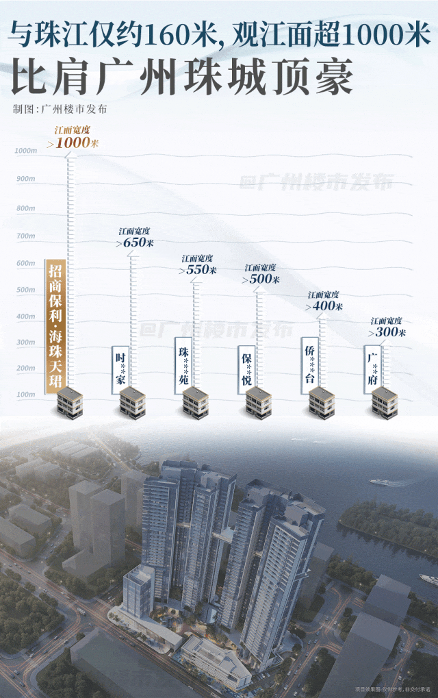 项目北侧还规划有一条10公里滨江绿道,琶洲接替珠城,高收入人群良多。楼市君对比了一下,1000多米的不雅江界面,